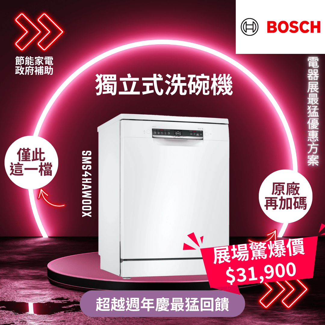BOSCH 60cm 13人份 110V 獨立式洗碗 (SMS4HAW00X)