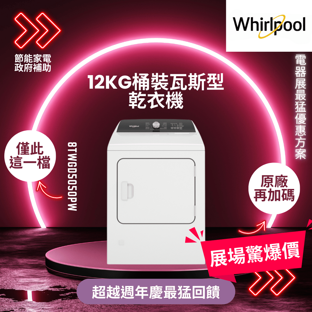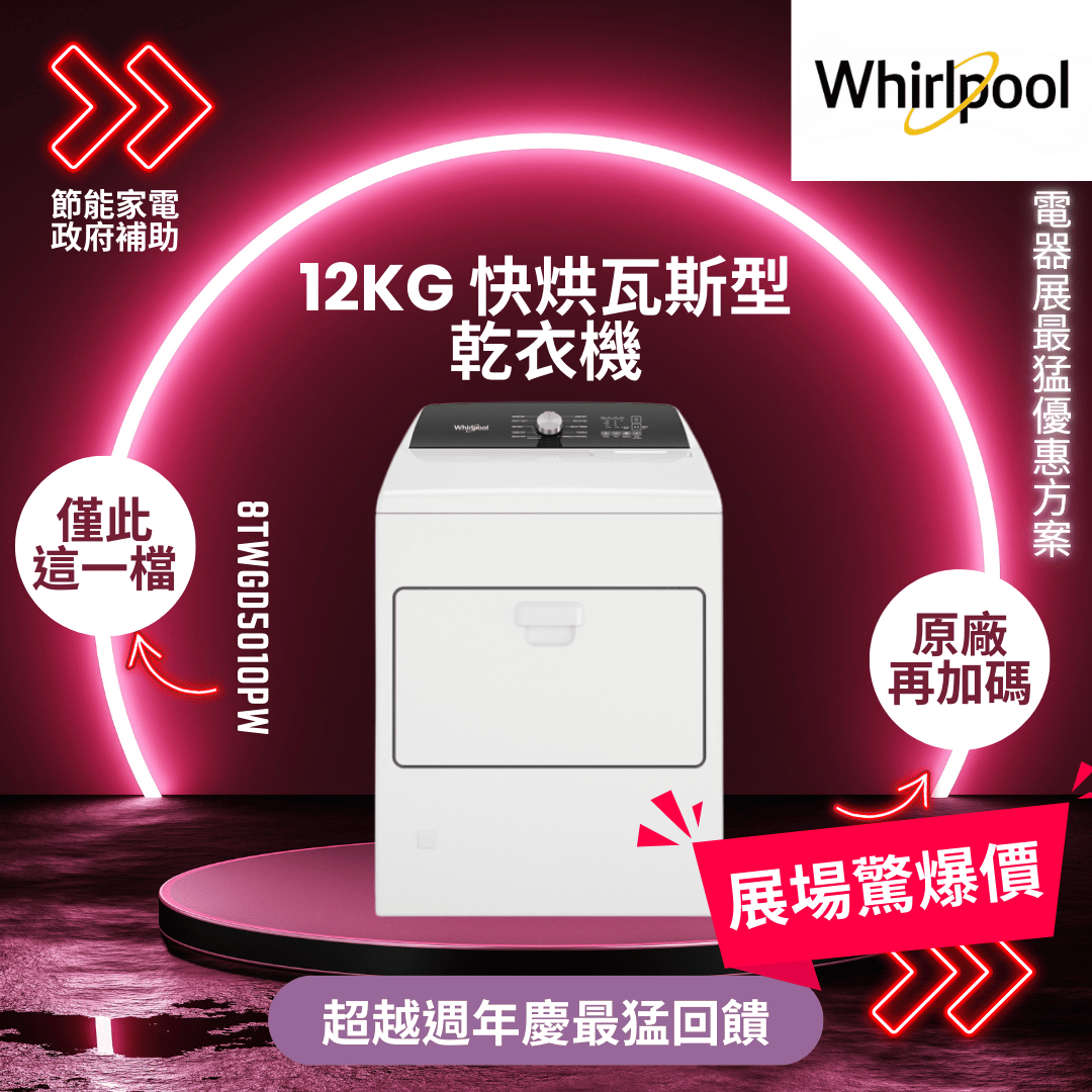 Whirlpool惠而浦 12kg快烘瓦斯型乾衣機 8TWGD5010PW