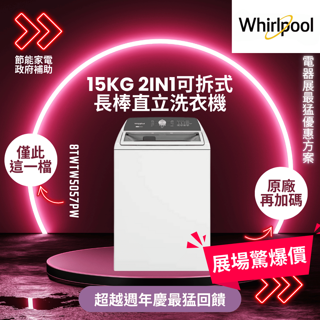 惠而浦 15kg 2in1可拆式長棒直立洗衣機(8TWTW5057PW)