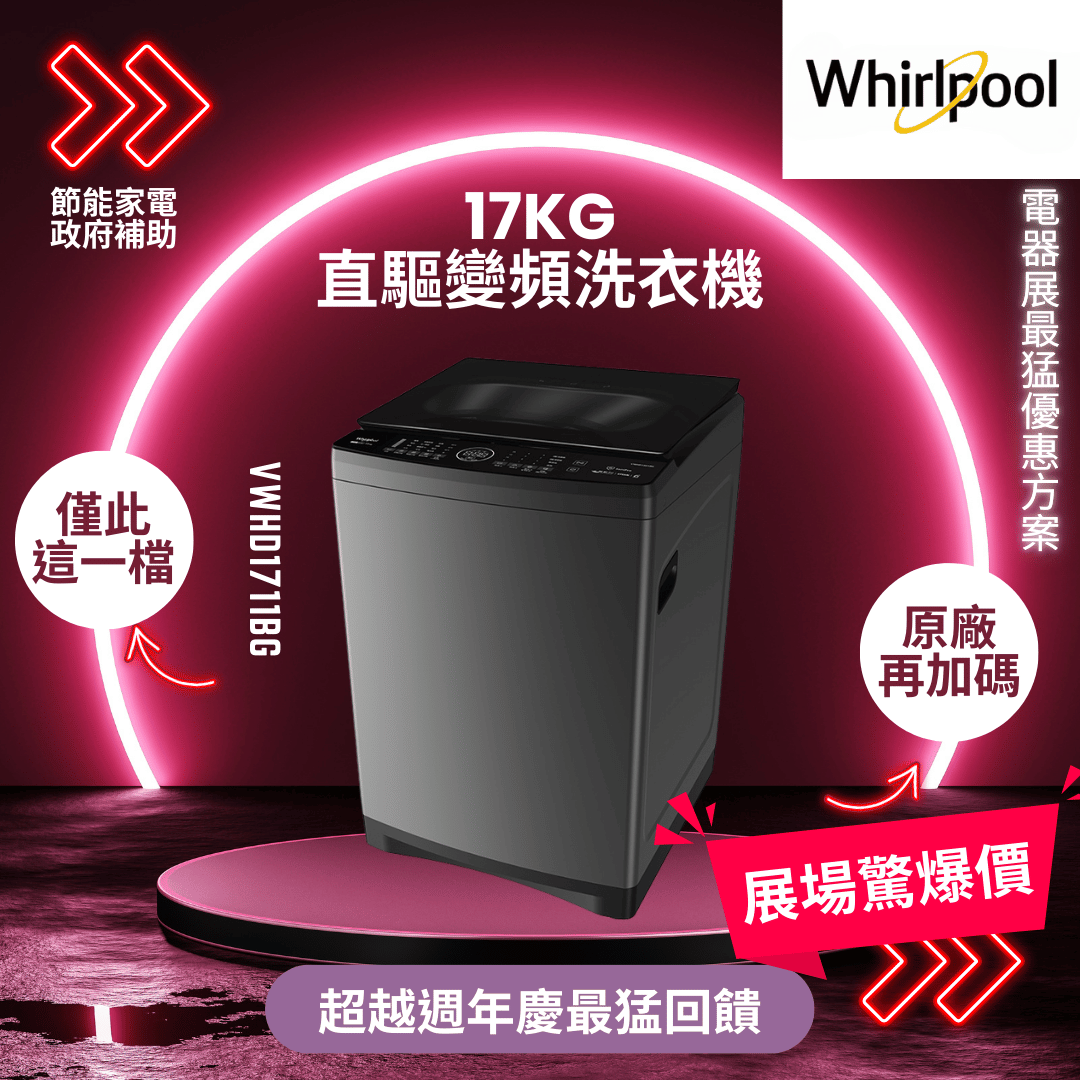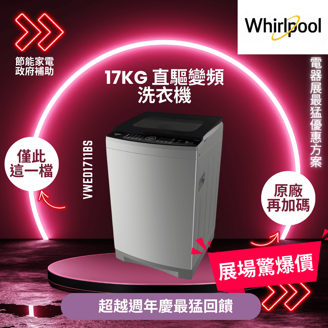 惠而浦 17kg直驅變頻直立洗衣機(VWED1711BS)