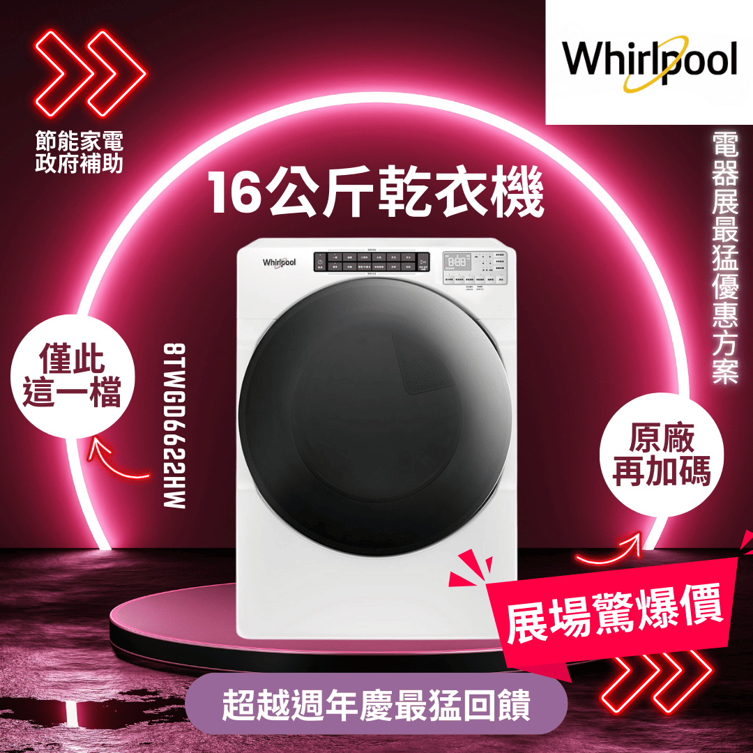 惠而浦 16公斤 快烘瓦斯型滾筒乾衣機 (*8TWGD6622HW)