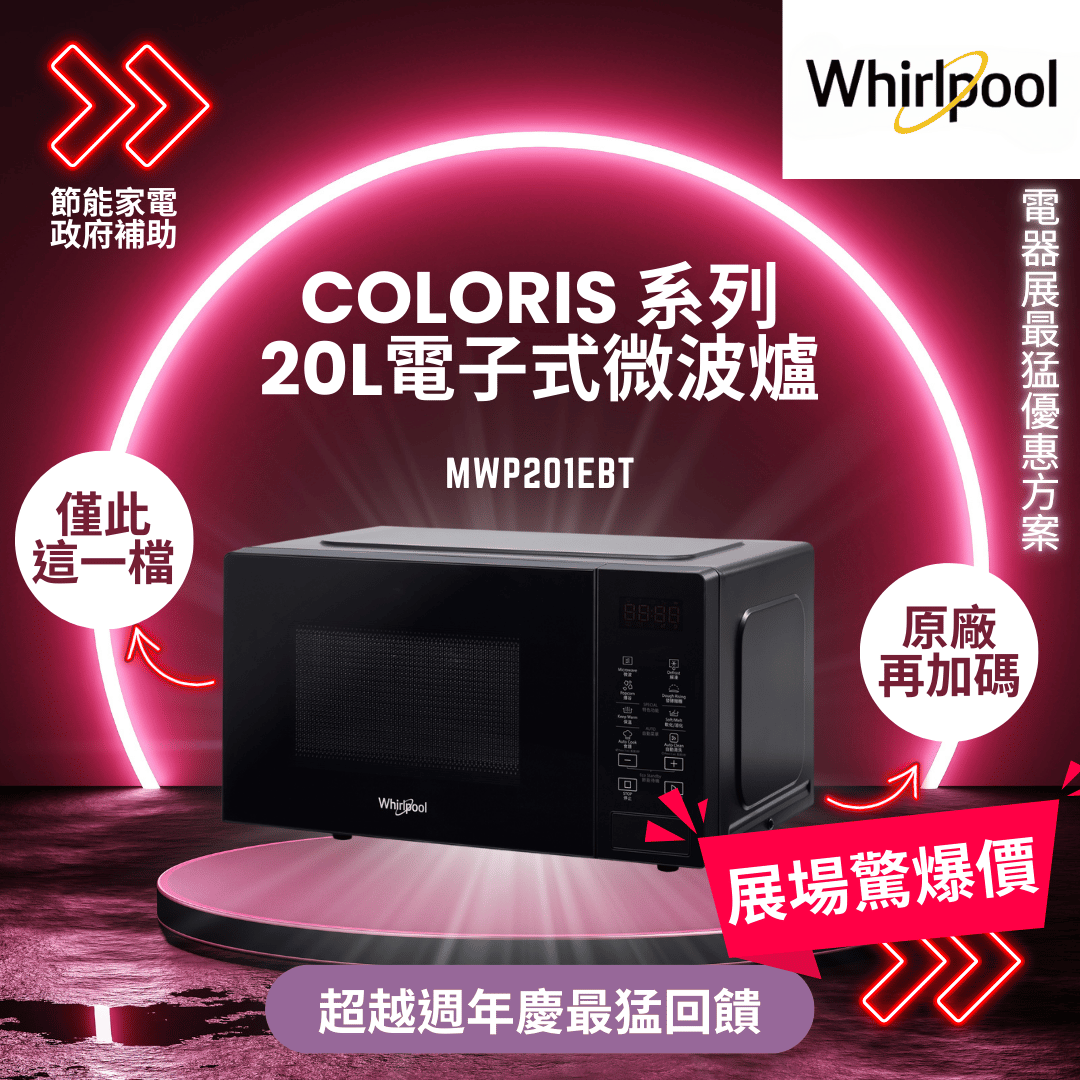 惠而浦 Coloris 系列 20L電子式微波爐(夜空黑) MWP201EBT
