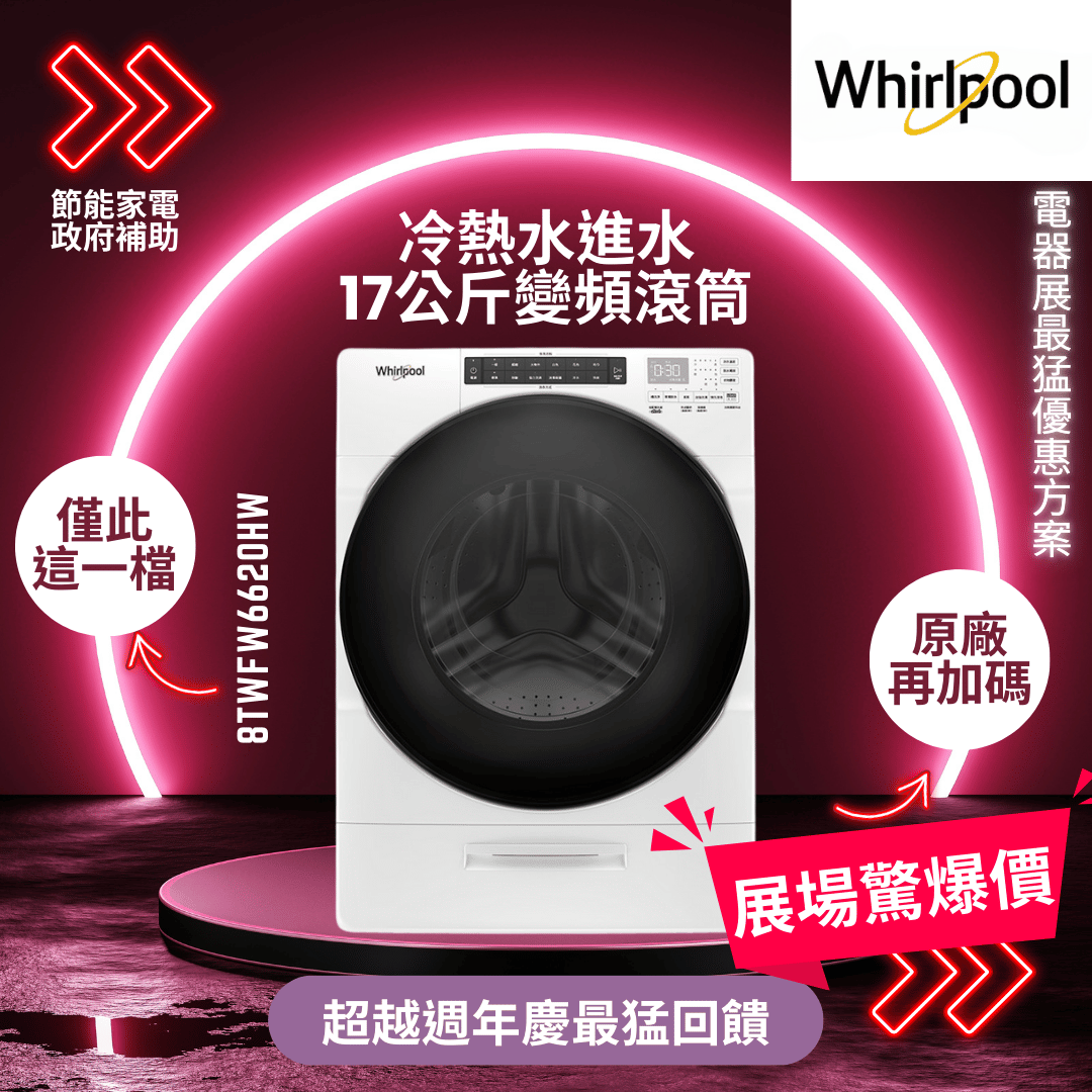 Whirlpool惠而浦 17公斤 滾筒洗衣機 8TWFW5620HW