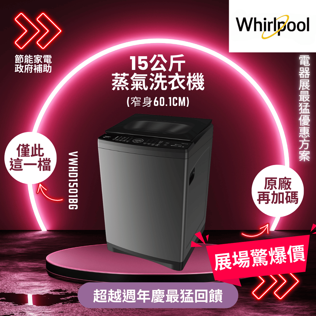 惠而浦 15kg直驅變頻直立洗衣機(VWED1501BS)