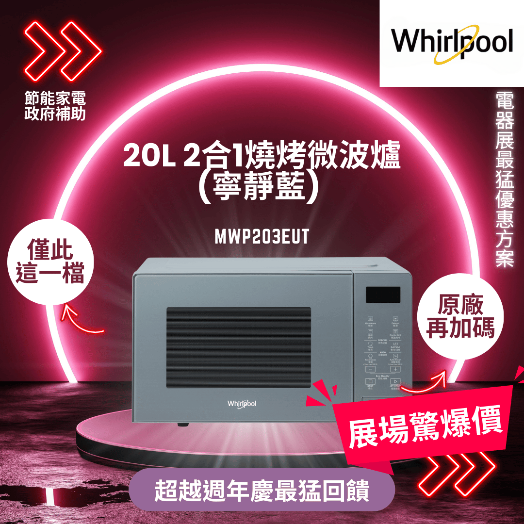 惠而浦 20L 2合1燒烤微波爐(寧靜藍) MWP203EUT