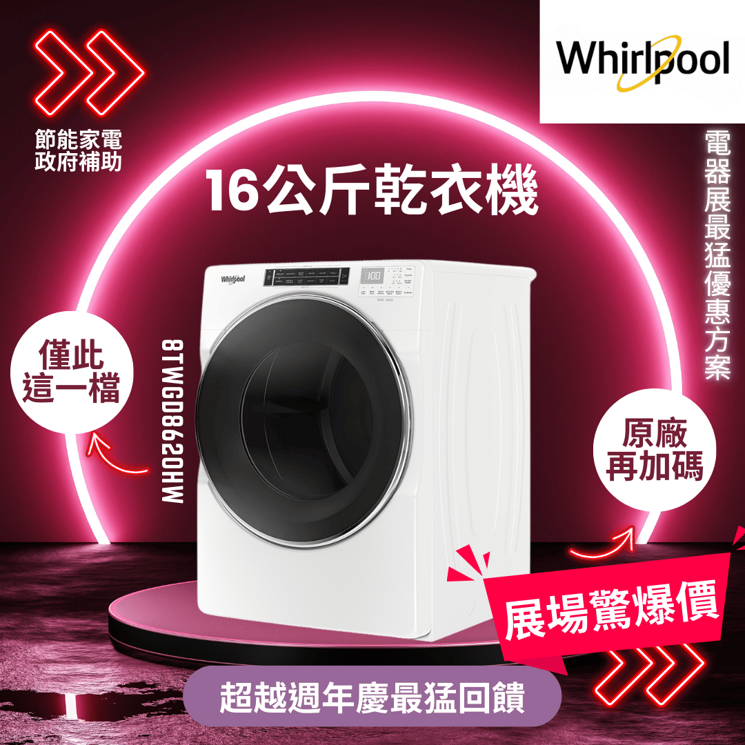 惠而浦 16公斤 快烘瓦斯型滾筒乾衣機 (8TWGD8620HW)