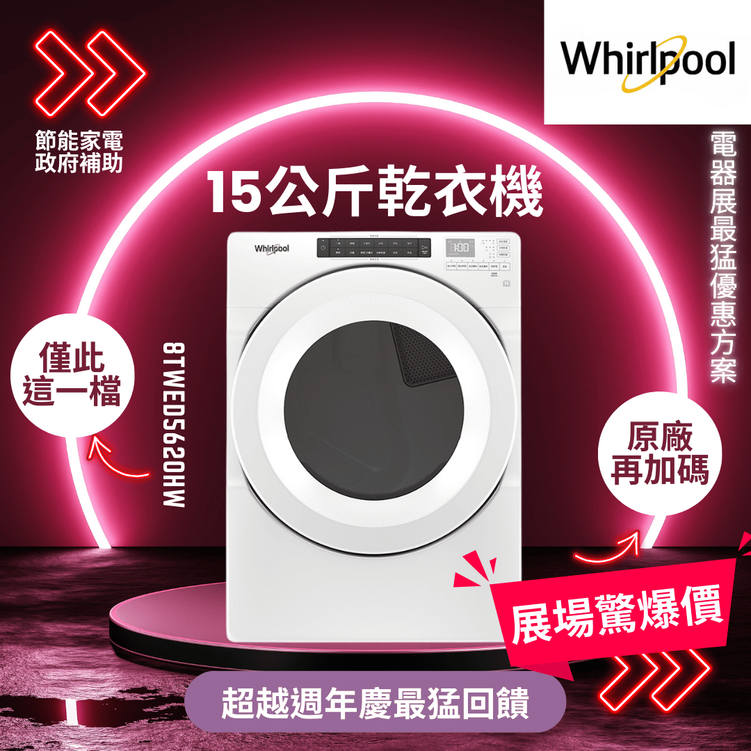 惠而浦 15公斤 電力型滾筒乾衣機(8TWED5620HW)