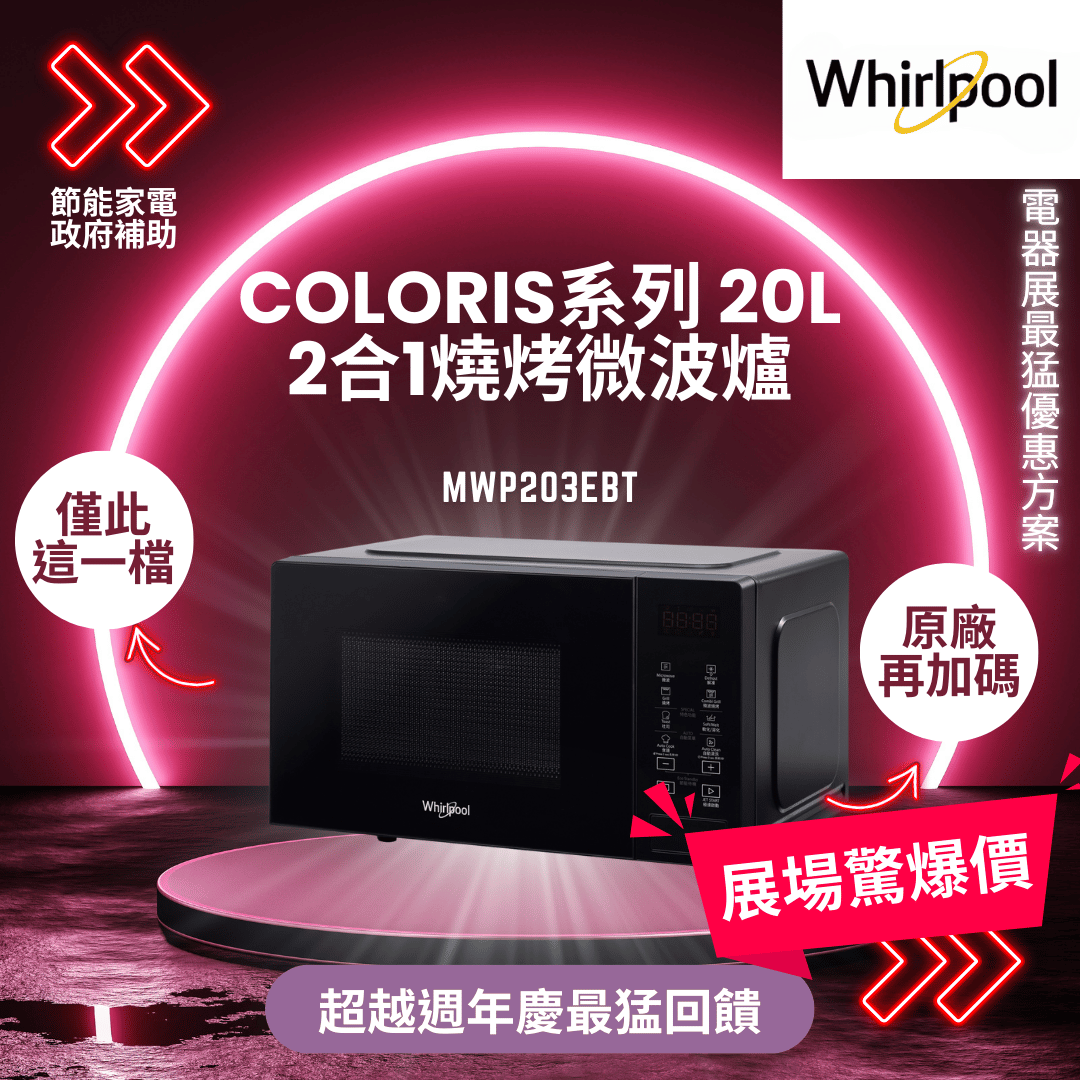 惠而浦 Coloris系列 20L 2合1燒烤微波爐(迷霧黑) MWP203EBT