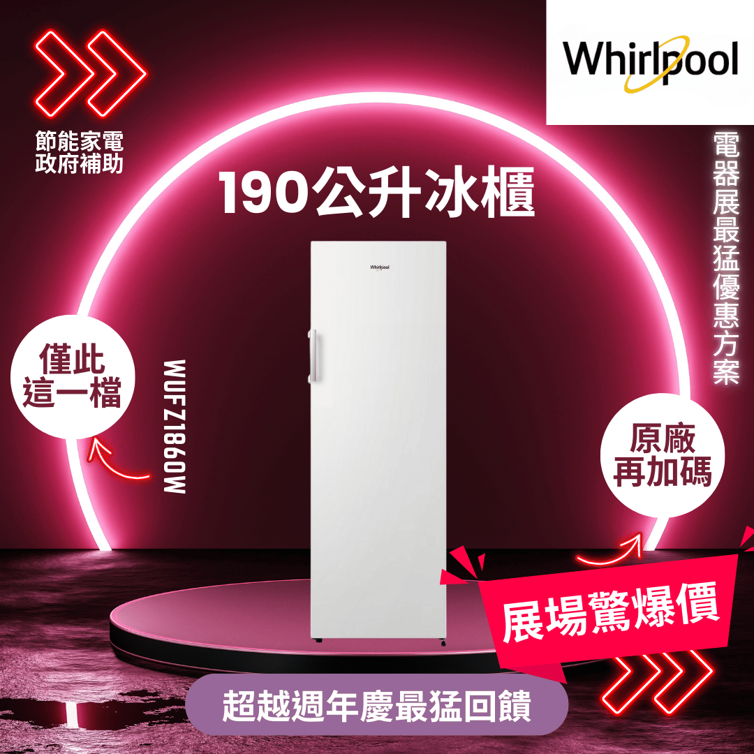Whirlpool惠而浦 190公升 直立式冰櫃 (WUFZ1860W)