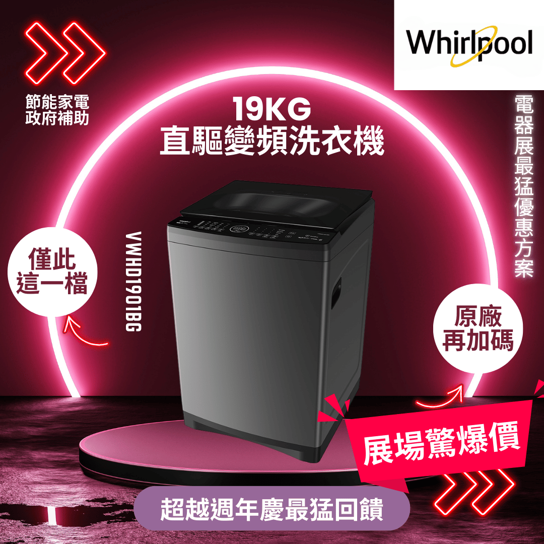 惠而浦 19kg直驅變頻直立洗衣機(VWHD1901BG)