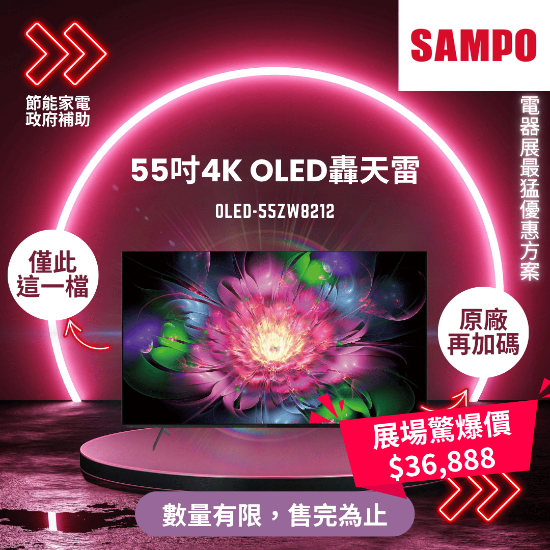 聲寶 55吋4K OLED轟天雷連網智慧顯示器(OLED-55ZW8212)
