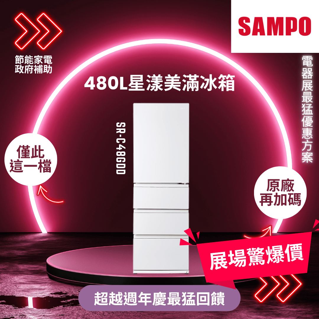 聲寶480L星漾美滿冰箱
