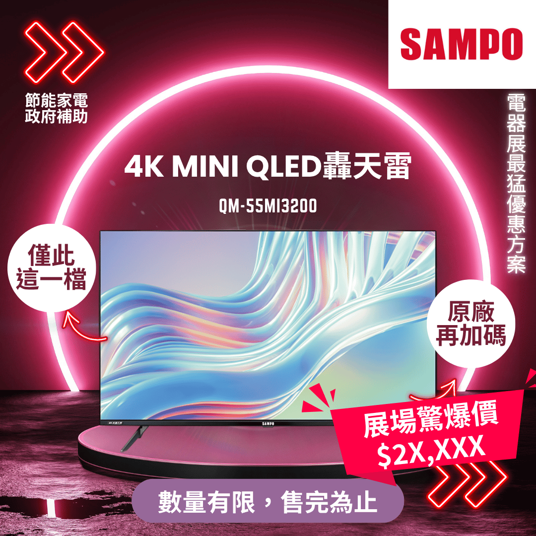 聲寶 55型4K MINI QLED轟天雷 QM-55MI3200