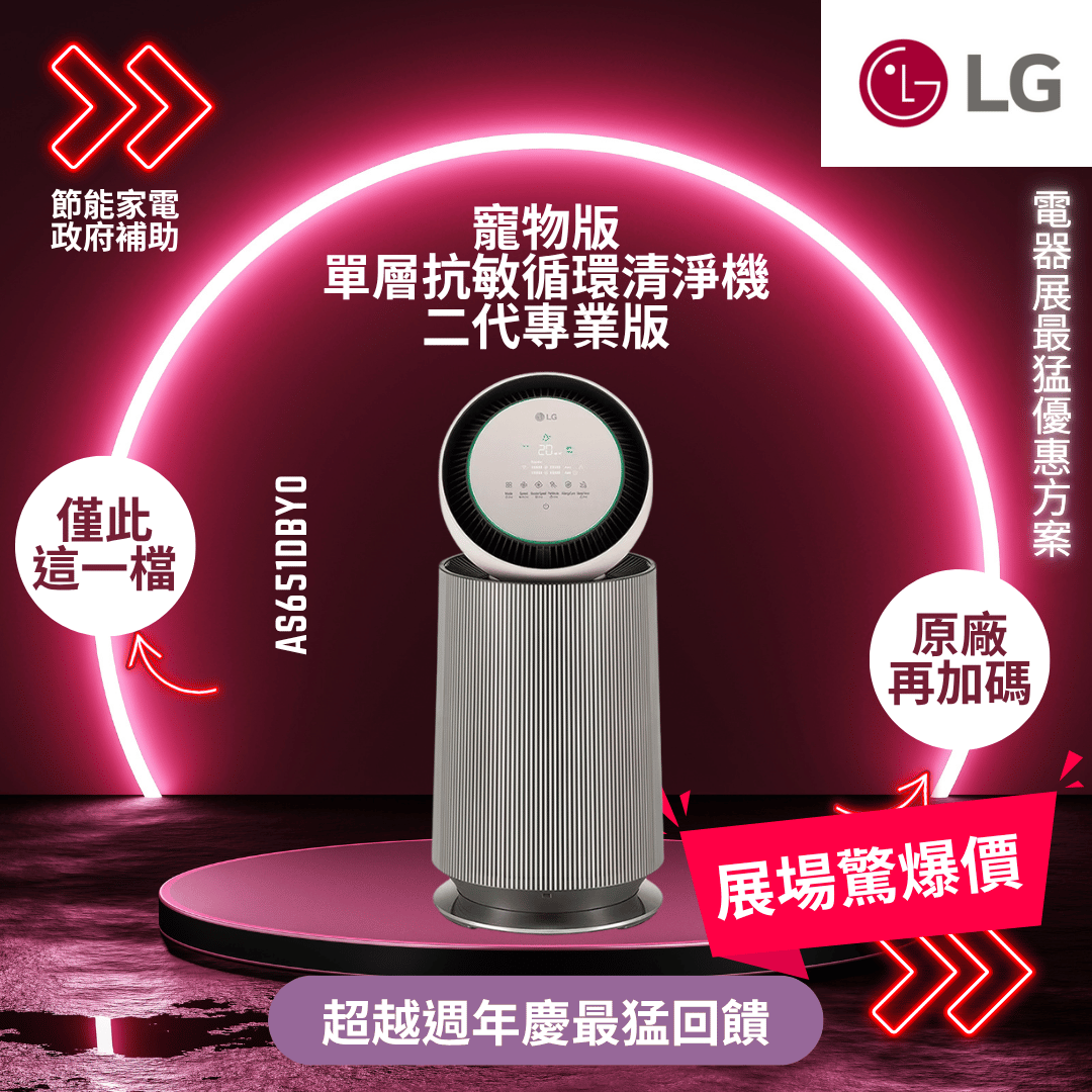 LG 樂金 寵物版單層抗敏循環空氣清淨機-二代專業版(360°全室淨化AS651DBY0UVnano)