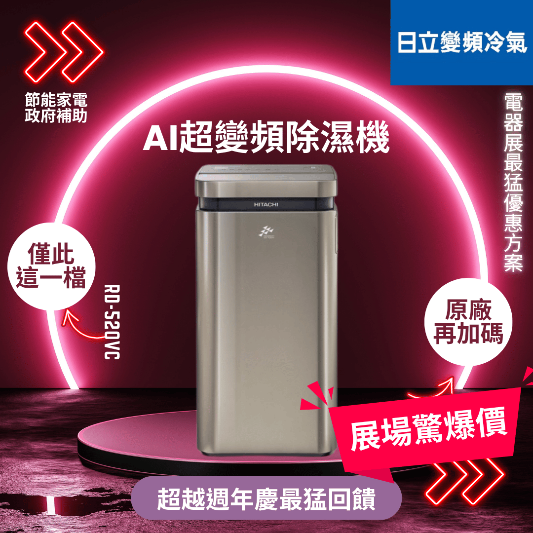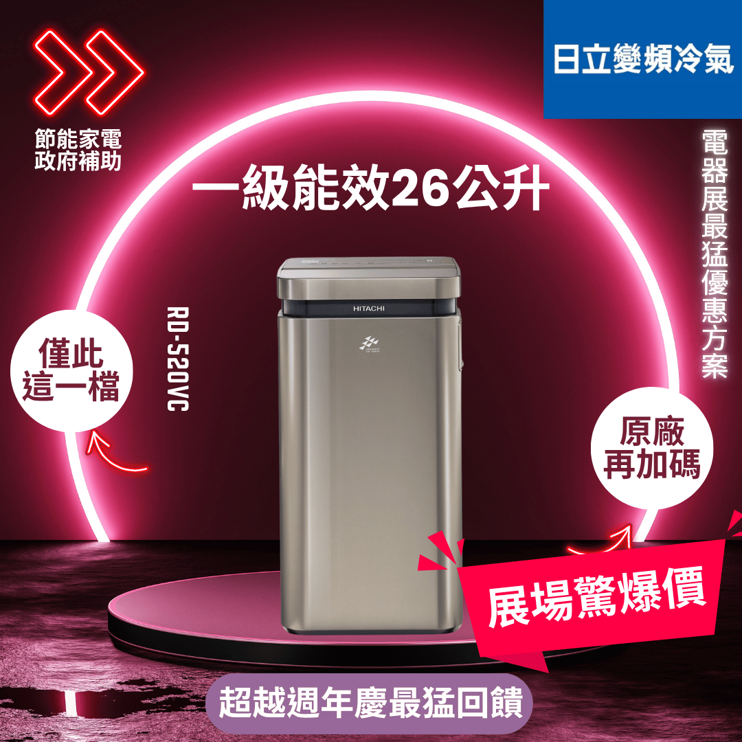 HITACHI 日立 一級能效 26公升日HEPA濾網極光鈦變頻除濕機(RD-520VC)