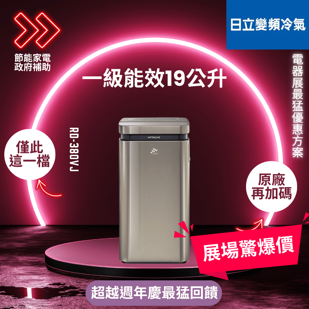 HITACHI 日立 一級能效 19公升日淨氣離子隱霧鈦變頻除濕機(RD-380VJ)