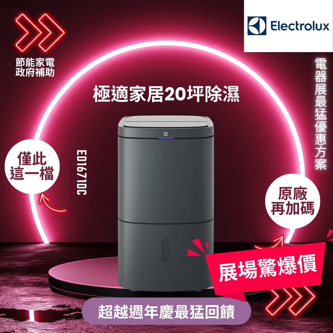 Electrolux伊萊克斯 16L 清淨除濕機-曜岩灰 ED1671DC