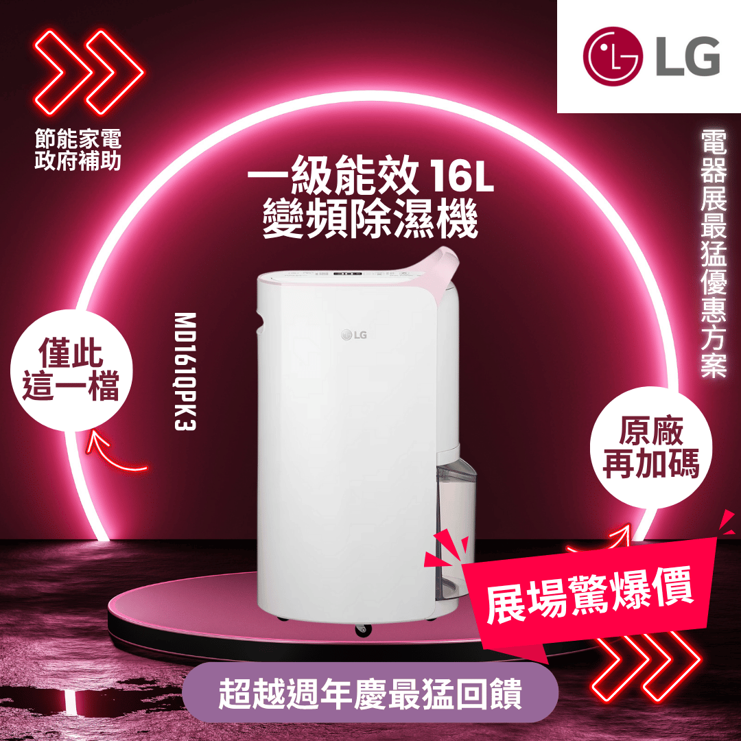 LG 樂金 一級能效 16公升WiFi變頻除濕機-粉紅(MD161QPK3)