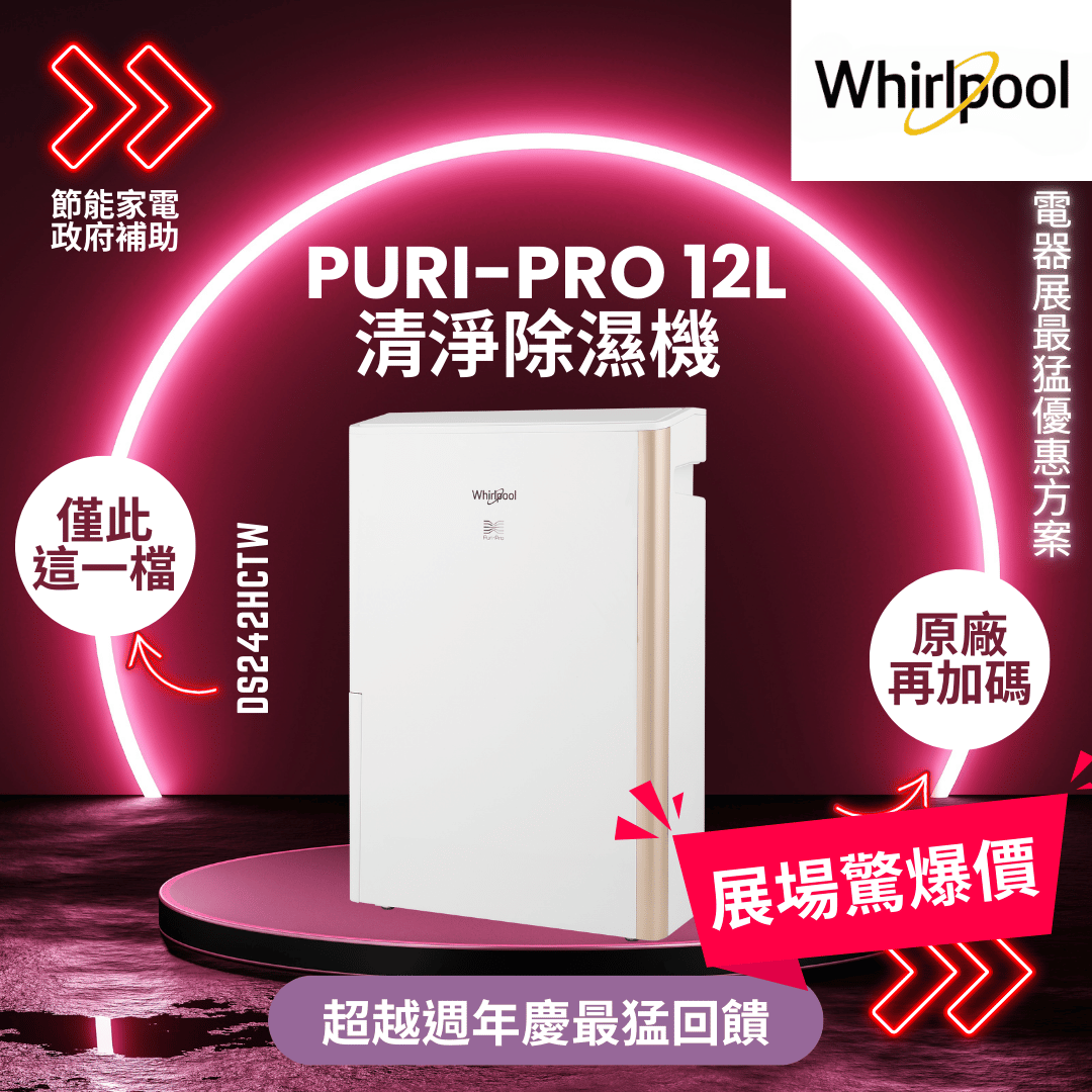 惠而浦 Puri-Pro 12L第六感智能清淨除濕機 DS242HCTW
