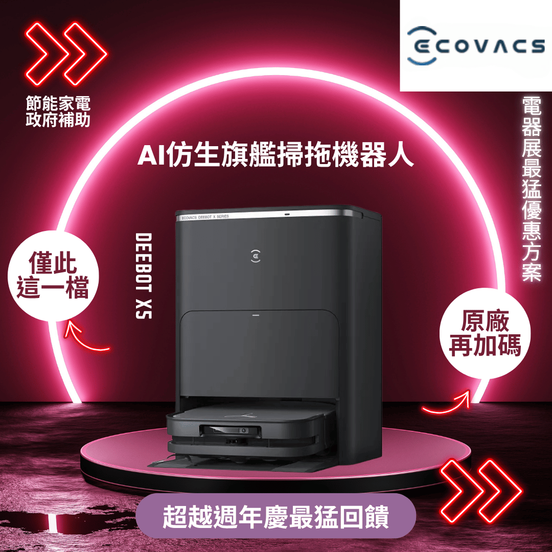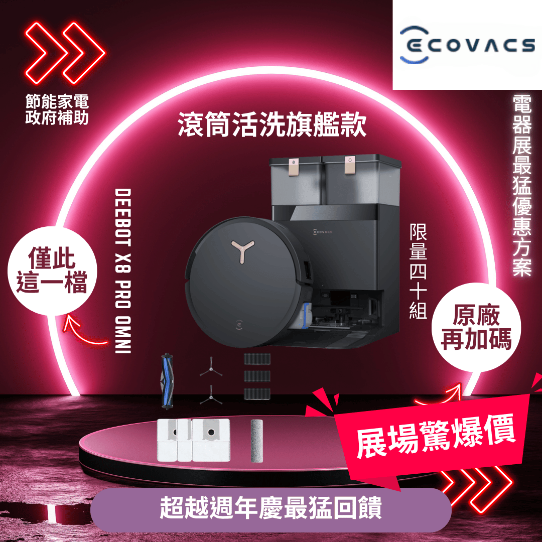 ECOVACS DEEBOT X8 PRO OMNI滾筒活洗旗艦掃拖機器人(活水拖地雙恆貼邊防纏繞)