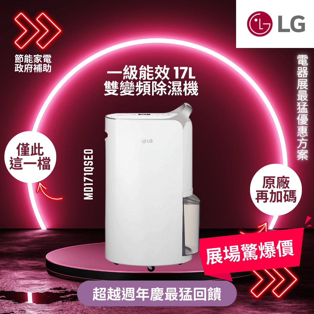 LG 樂金 PuriCare 一級能效 17公升雙變頻除濕機 WiFi遠控(MD171QSE0晶鑽銀)