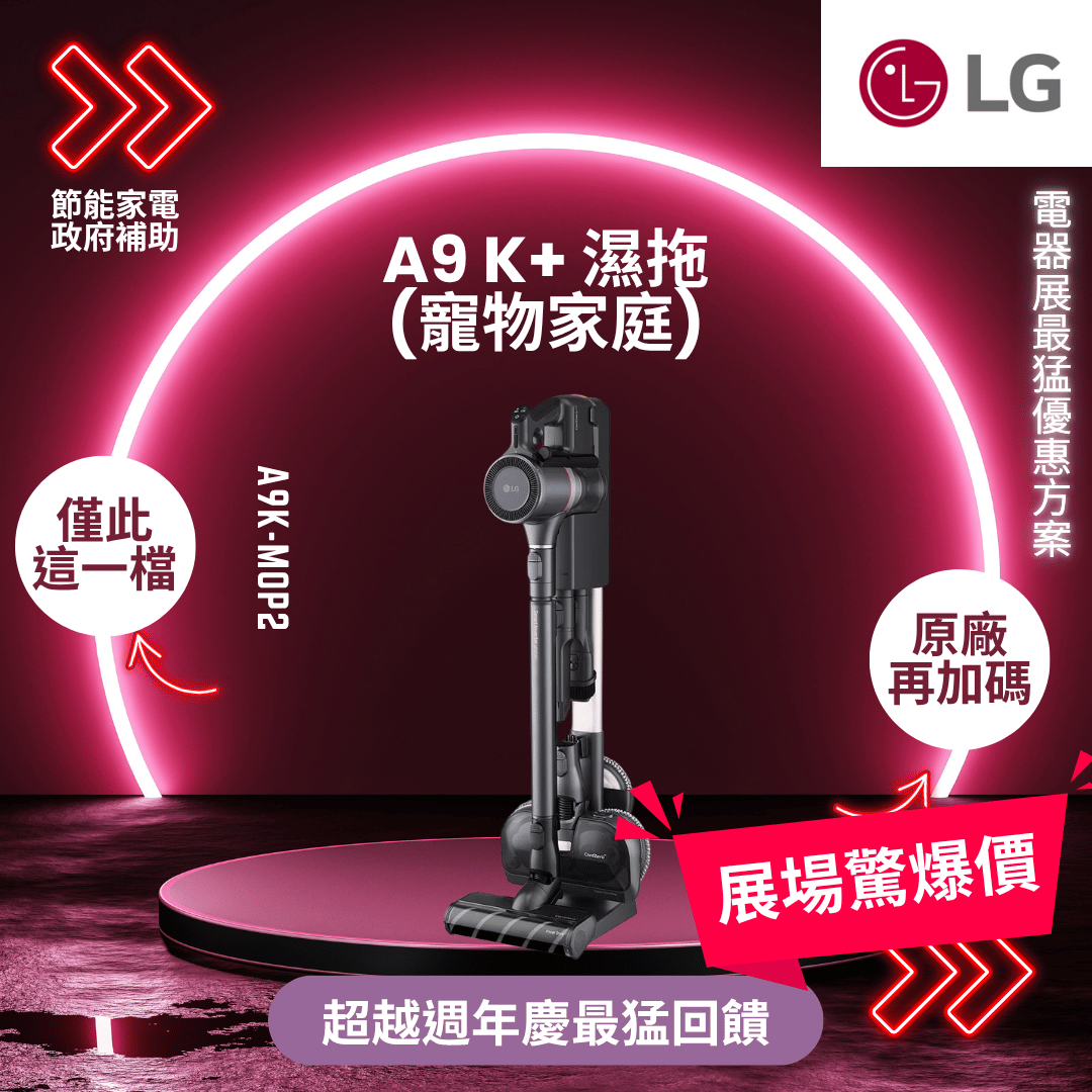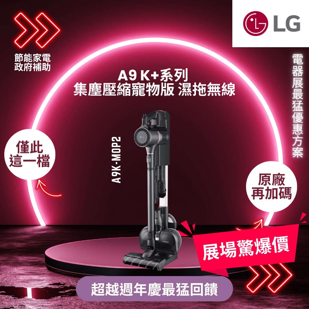 LG 樂金 CordZero A9 K+系列 集塵壓縮寵物版 濕拖無線吸塵器(除寂靜灰A9K-MOP2)
