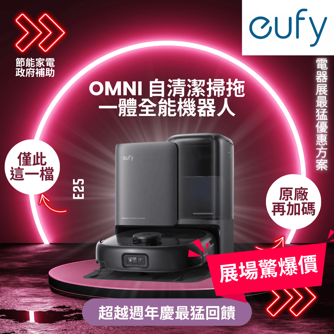 eufy Omni E25 自清潔掃拖一體全能機器人(活水洗地_零纏繞伸縮滾刷_20000PA大吸力)