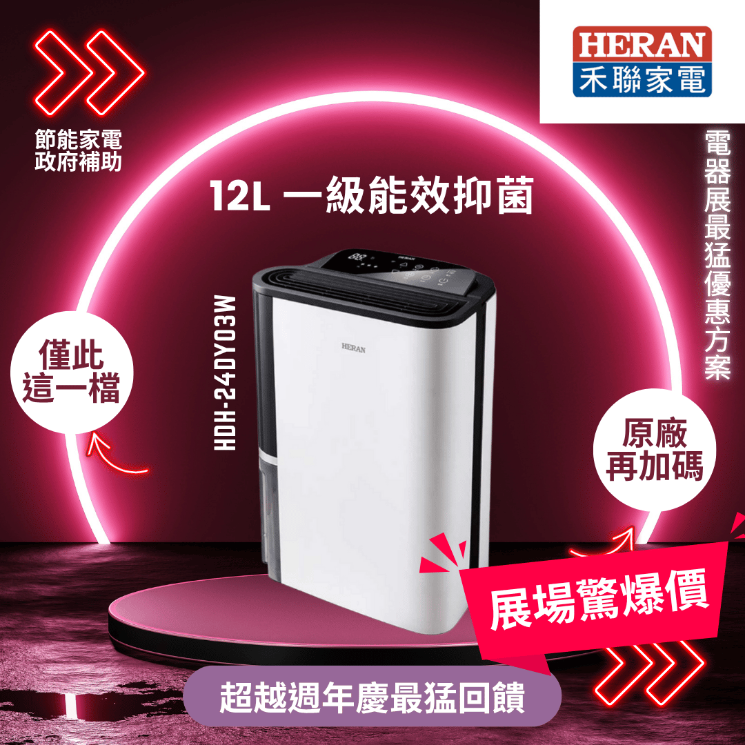 禾聯 12L 一級能效抑菌除濕機(HDH-24DY03W)