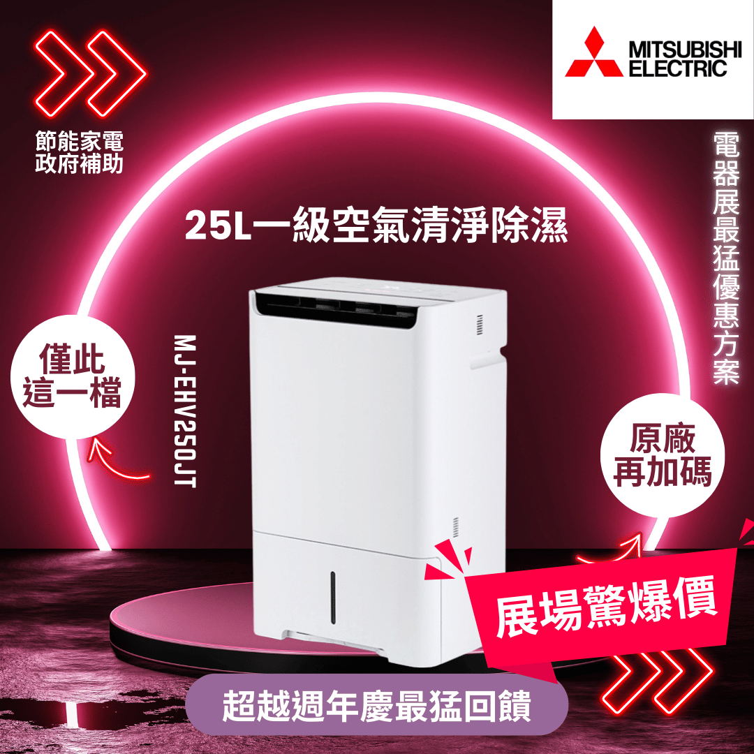 MITSUBISHI 三菱電機 25公升日製一級能效HEPA變頻空氣清淨除濕機(MJ-EHV250JT-TW)