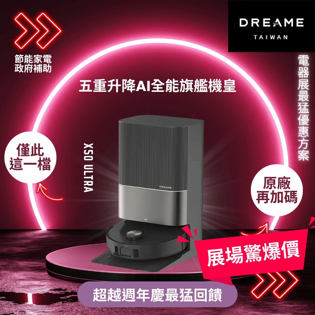 追覓科技 X50 Ultra 五重升降AI全能旗艦機皇(仿生機械輪足潛望式升降0纏繞氣旋滾刷20000PA)