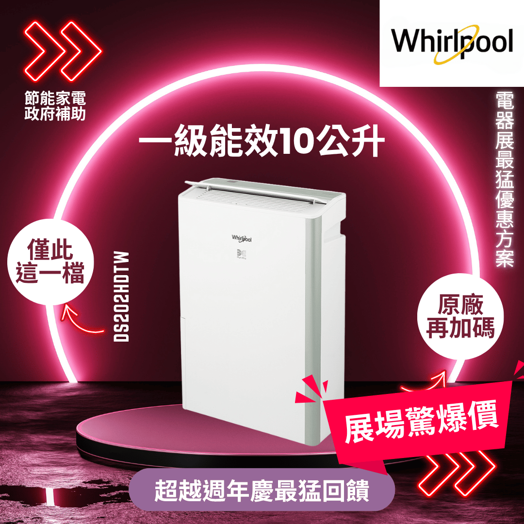Whirlpool 惠而浦 一級能效10公升第六感智能清淨除濕機(DS202HDTW)