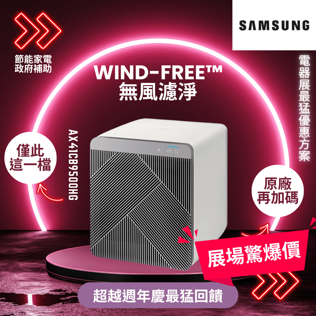 SAMSUNG三星 16坪 BESPOKE美型無風智慧清淨機-卵石灰 AX41CB9500HGTW