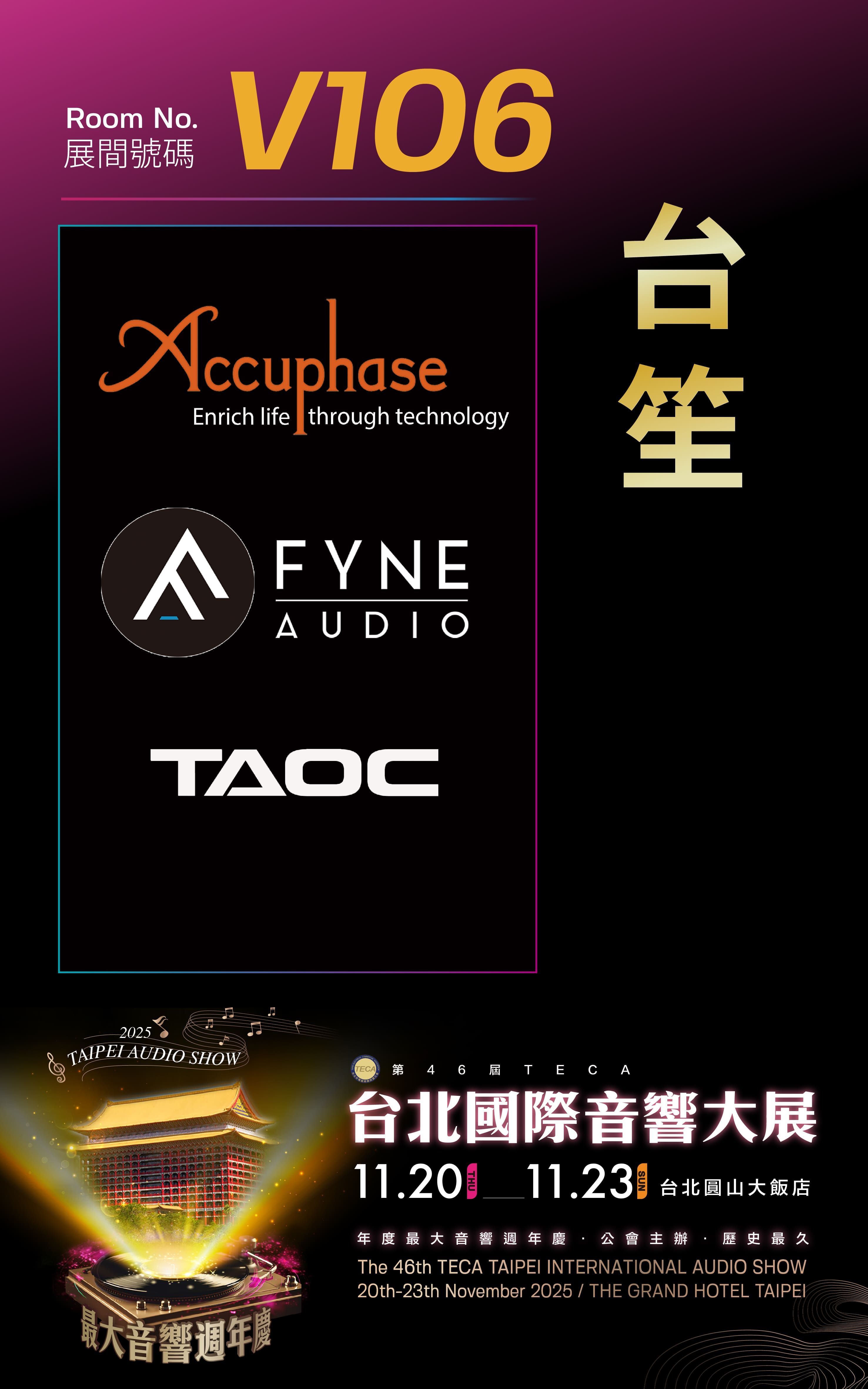 台灣最具代表性、歷史最悠久的音響盛會——2025台北國際音響大展,將於11月20日至11月23日,唯一登上國門級地標「台北圓山大飯店」盛大舉辦!由歷史最悠久「台北市電器商業同業公會」所主辦迄今已邁入第46屆,此次集結來自全球百大頂尖品牌、高階音響、時尚音響、黑膠、Hi-Fi 器材、耳機與數位串流設備,首度超越150間獨立豪華展房,打造專業級與生活品味並重的國際級視聽殿堂。