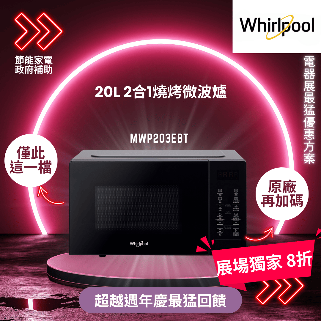 惠而浦 Coloris系列 20L 2合1燒烤微波爐(迷霧黑) MWP203EBT