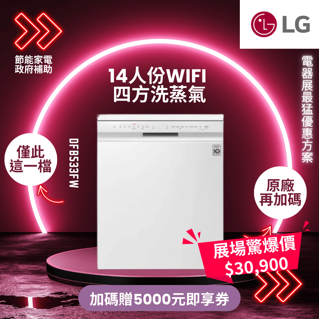LG QuadWash™ Steam 四方洗蒸氣超潔凈洗碗機(DFB533FW)