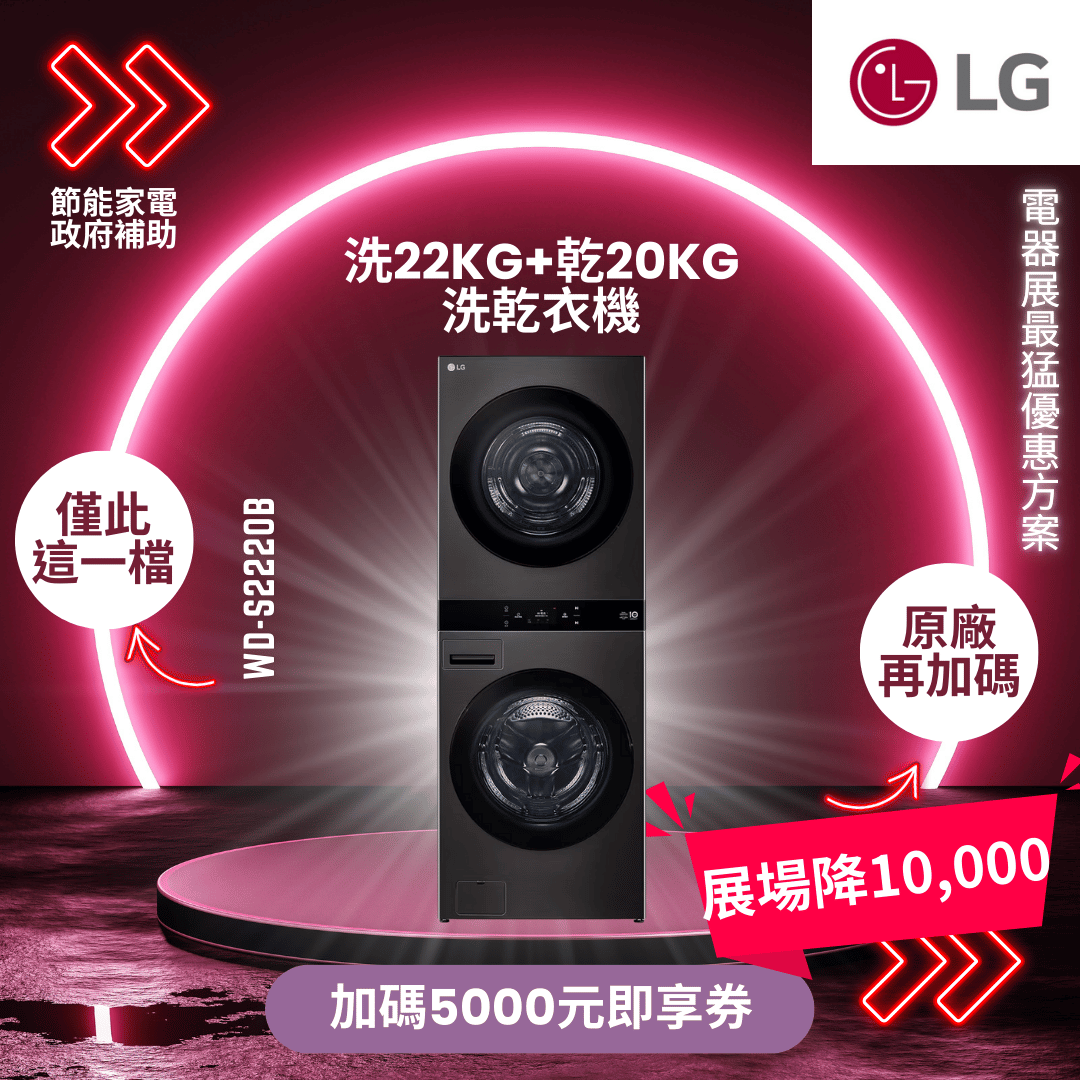 LG 洗22公斤+乾20公斤 WashTower™ AI 智控洗乾衣機