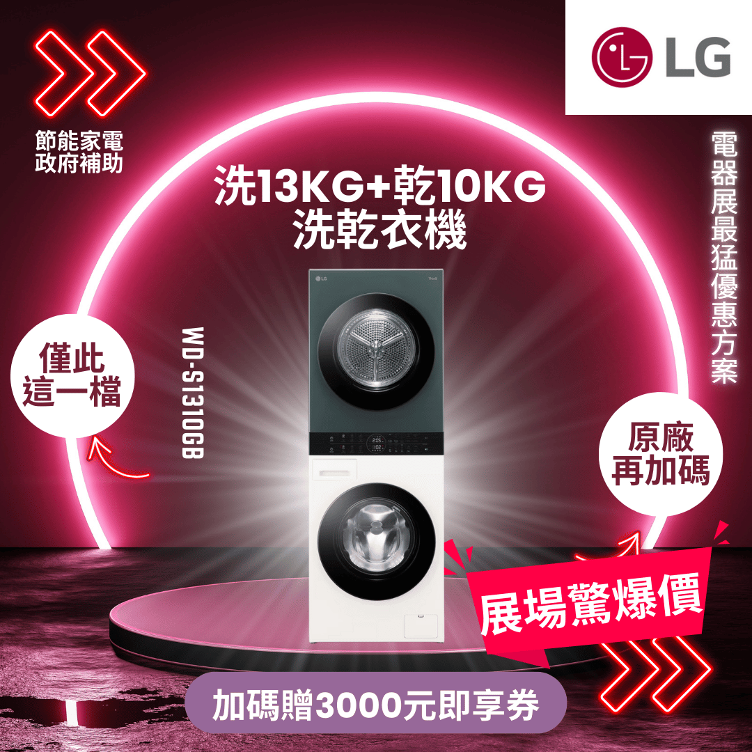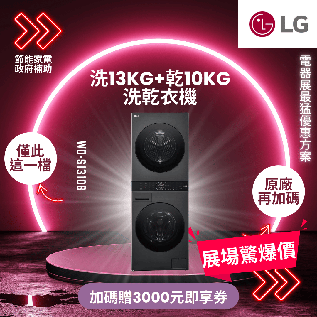 LG 洗13公斤+乾10公斤 WashTower™ AI 智控洗乾衣機WD-S1310B