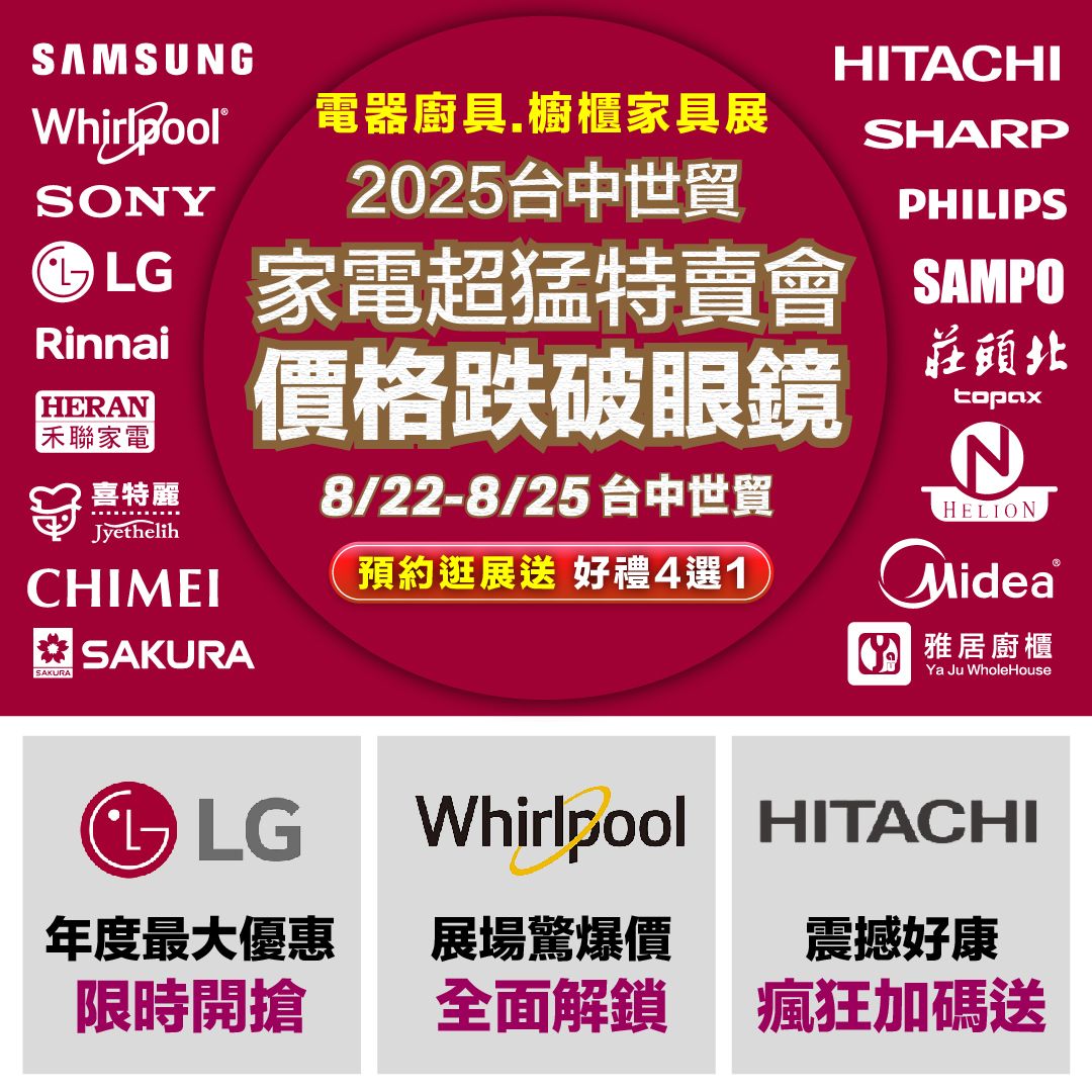 2025台中家具床墊家電廚具展規劃「廚具設計展區」邀請林內、櫻花等知名品牌參展,最新、最時尚、最實用的廚具設備從基本設備到最新的創新設計,熱水器、排油煙機、淨水器、瓦斯爐、IH爐、洗碗機...等一應俱全,滿足您的各種需求,展期祭出最強回饋驚爆價,千萬不要錯過。