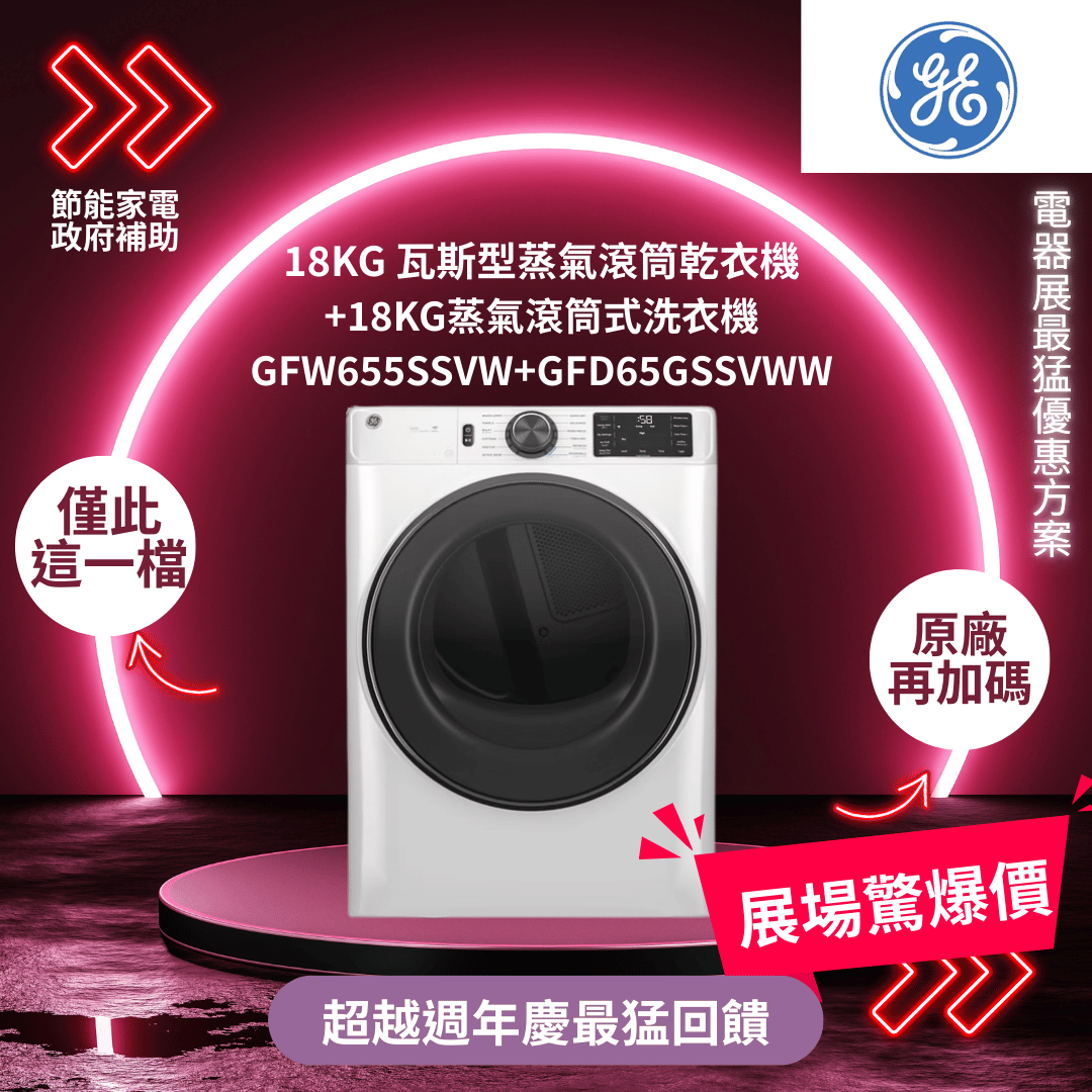 GE奇異18KG 瓦斯型蒸氣滾筒乾衣機 +18KG蒸氣滾筒式洗衣機 GFW655SSVW+GFD65GSSVWW