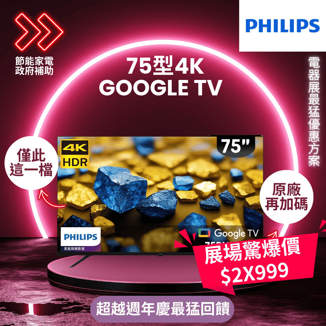 飛利浦 75型4K Google TV 智慧顯示器