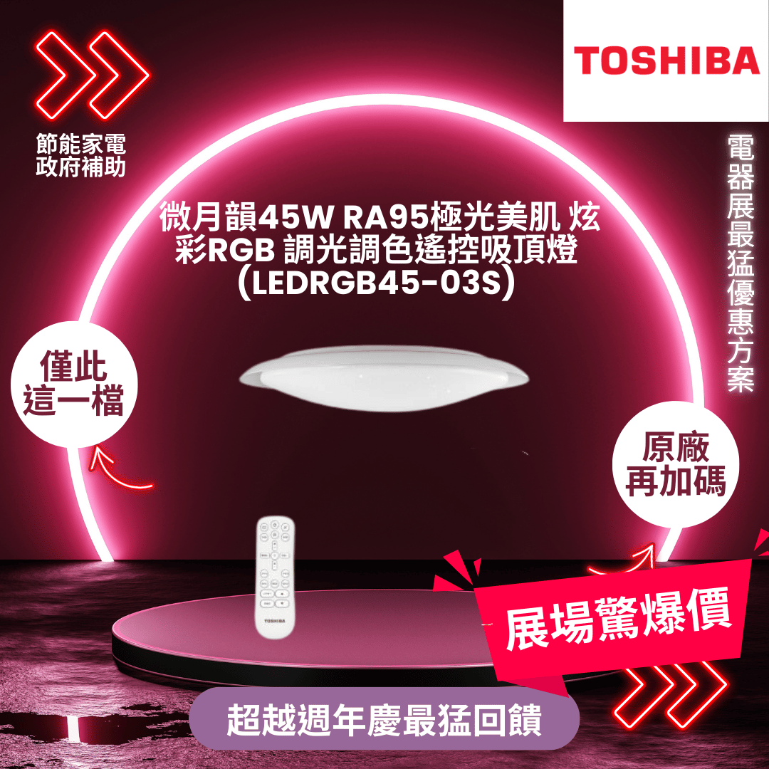 東芝 微月韻45W RA95極光美肌 炫彩RGB 調光調色遙控吸頂燈(LEDRGB45-03S)