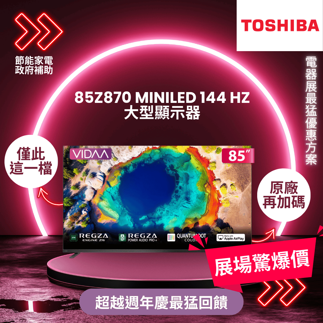 東芝 85Z870 miniLED 144 Hz 大型顯示器