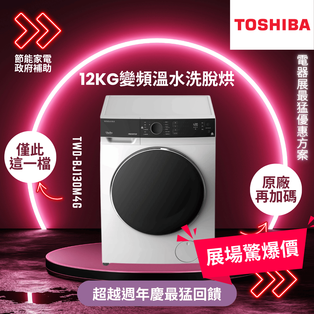 東芝 12公斤變頻溫水洗脫烘滾筒洗衣機(TWD-BJ130M4G)