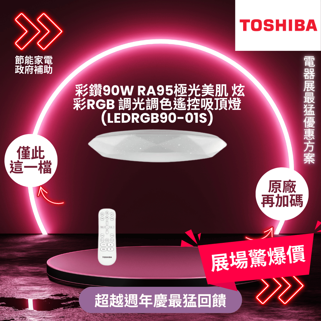 東芝 彩鑽90W RA95極光美肌 炫彩RGB 調光調色遙控吸頂燈(LEDRGB90-01S)