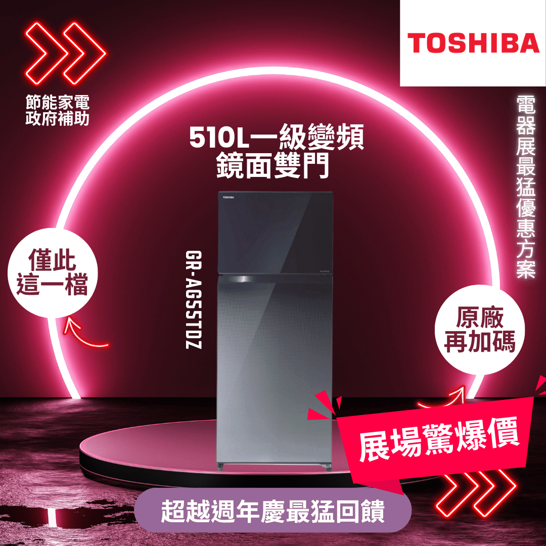 TOSHIBA 東芝 510公升一級能效變頻鏡面雙門電冰箱GR-AG55TDZ