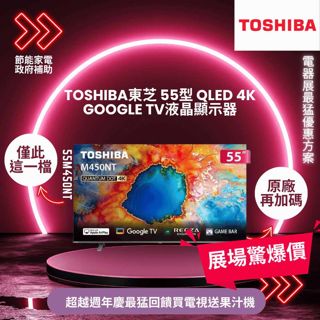 TOSHIBA東芝 55型 QLED 4K GOOGLE TV液晶顯示器55M450NT