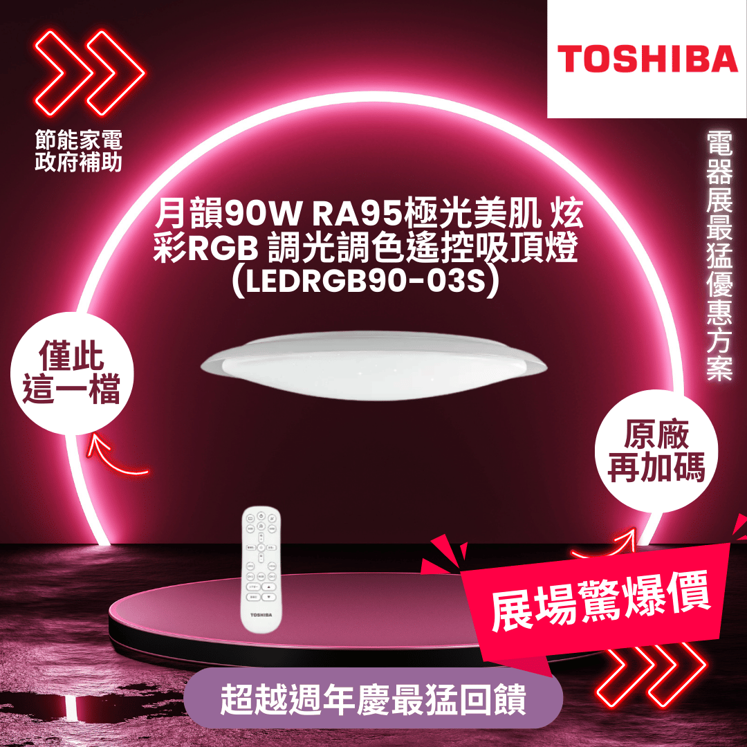 東芝 月韻90W RA95極光美肌 炫彩RGB 調光調色遙控吸頂燈(LEDRGB90-03S)