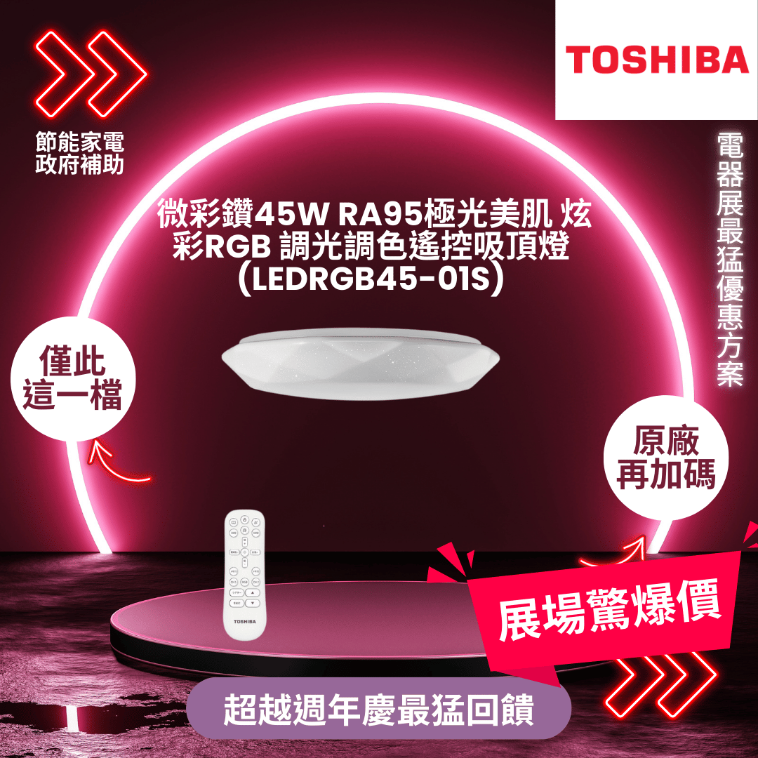 東芝 微彩鑽45W RA95極光美肌 炫彩RGB 調光調色遙控吸頂燈(LEDRGB45-01S)