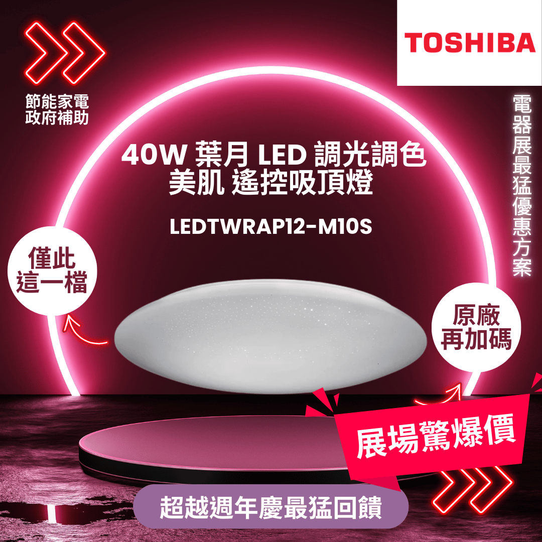 東芝 40W 葉月 LED 調光調色美肌 遙控吸頂燈(LEDTWRAP12-M10S)