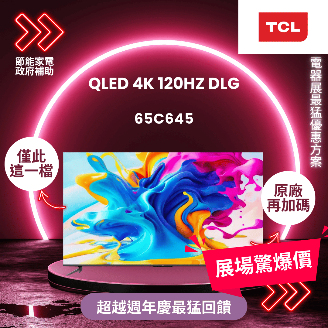 TCL 65型 4K QLED 4K 120Hz DLG Google TV 量子智能連網顯示器(65C645-基本安裝)